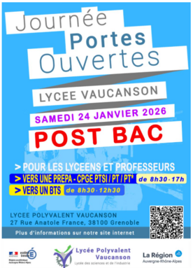 JPO POST-BAC CPGE et BTS - Lycée VAUCANSON de Grenoble : samedi 24 janvier de 8h à 17h
